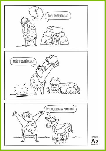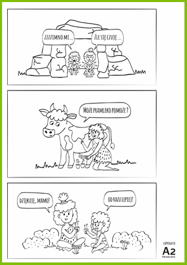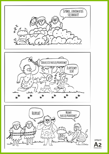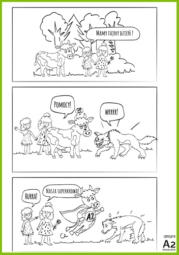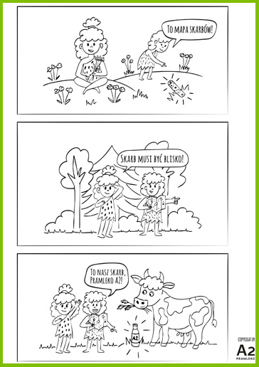 Czy zastanawialiście się kiedyś, jak pierwsi ludzie wpadli na pomysł, żeby pić mleko krowie? Sprawdź, jak Prarodzina odkryła, że mleko to pyszne i zdrowie pożywienie*. Pobierz kolorowankę, wydrukuj i podaruj swojemu dziecku. Ciekawe, jak Wasze dzieci wyobrażają sobie, jak ludzie zaczęli pić mleko? Bawcie się dobrze!